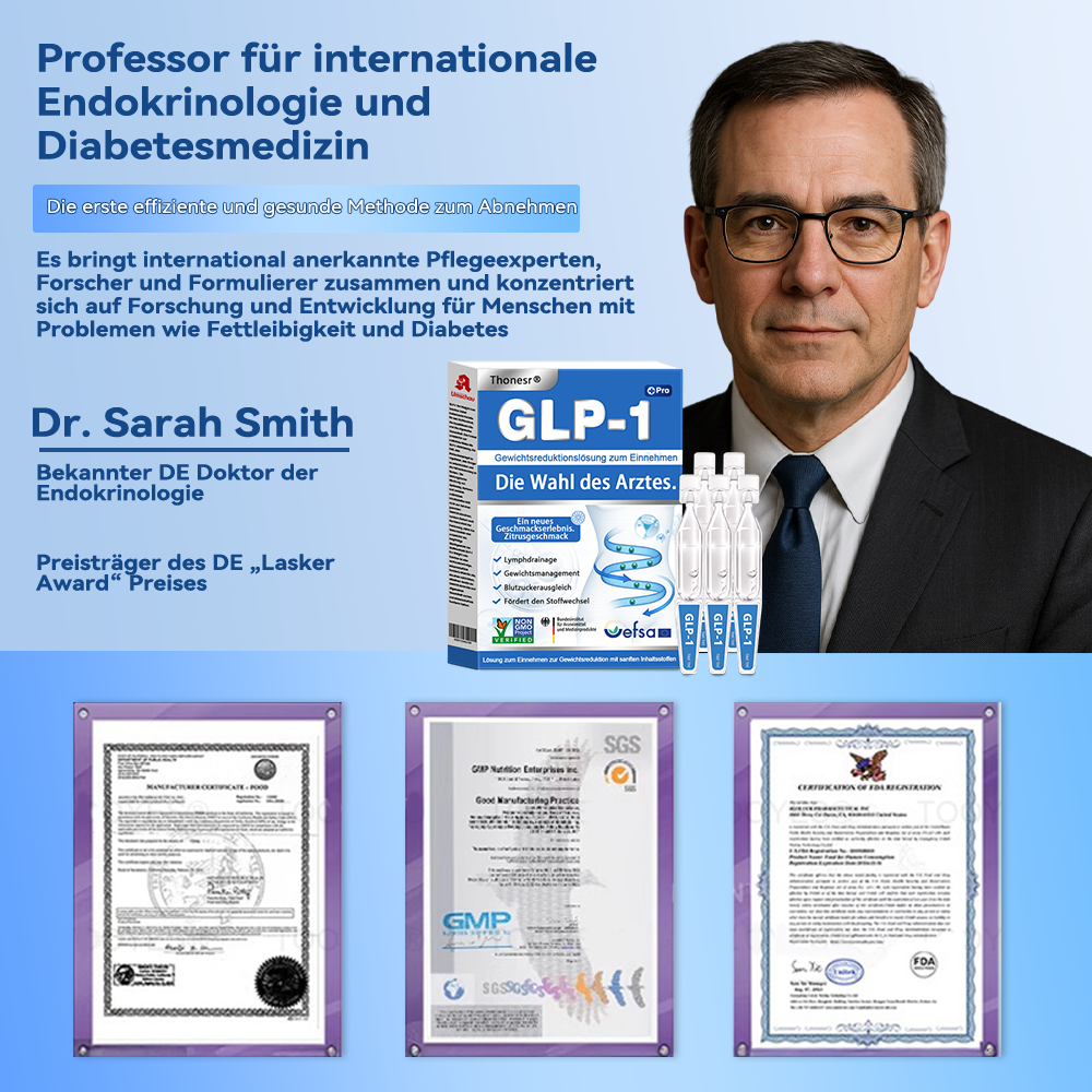 Als Endokrinologe setze ich mich dafür ein, wirksame und natürliche Lösungen für die Stoffwechselgesundheit und Gewichtskontrolle zu finden. Nach umfangreichen Forschungen und klinischen Studien mit über 5.000 Teilnehmern habe ich festgestellt, dass 𝐓𝐡𝐨𝐧𝐬𝐫® GLP-1 Pro Gewichtsreduktionslösung zum Einnehmen. Diese Formel unterstützt auf natürliche Weise die GLP-1-Aktivierung, hilft, den Blutzuckerspiegel zu regulieren, Heißhungerattacken zu zügeln und die Fettverbrennung zu steigern. Die kraftvolle Mischung aus Apfelessig und anderen natürlichen Inhaltsstoffen unterstützt eine gesunde Gewichtsabnahme, fördert aber auch die Verdauung, stärkt das Immunsystem und unterstützt das langfristige Stoffwechselgleichgewicht. Gewichtsreduktionslösung zum Einnehmen ist eine vertrauenswürdige, wissenschaftlich fundierte Wahl für alle, die einen natürlichen und effektiven Ansatz zur Gewichtskontrolle und für die allgemeine Gesundheit suchen.